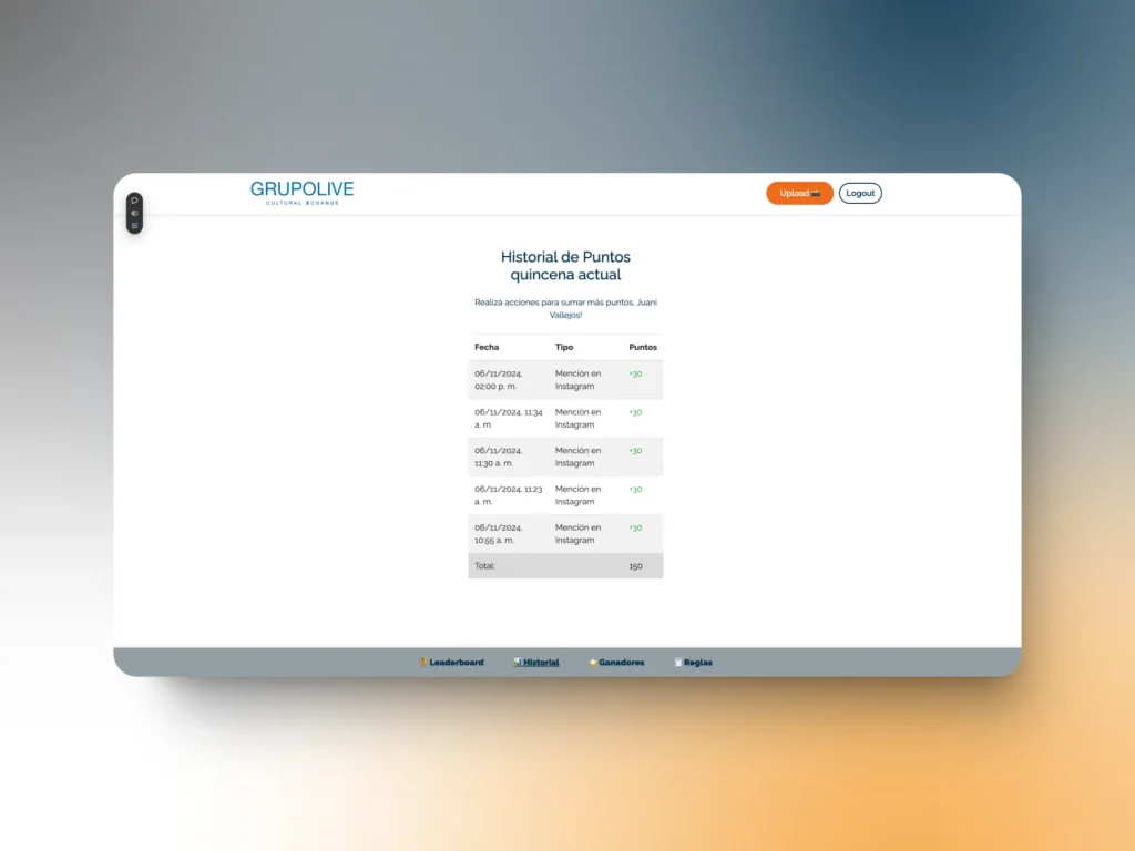 - Comments: 5 points for each comment on Grupolive posts.
