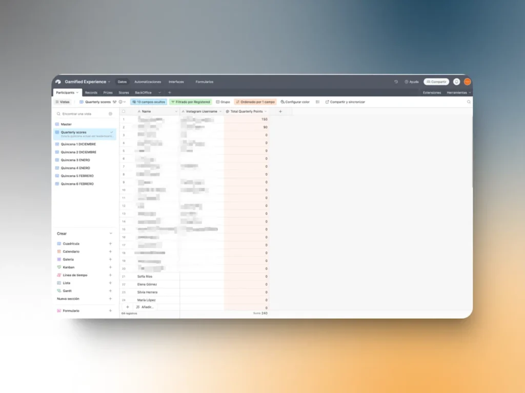 - Action: Upon submission, a webhook verifies the Instagram account and registers the user. Points are assigned via Airtable.